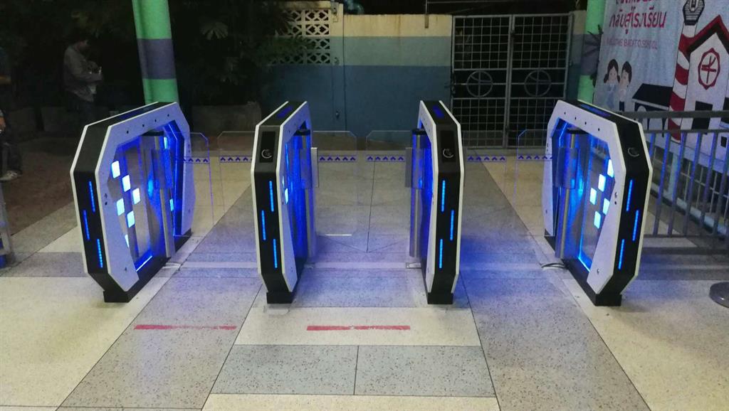 速通門346系統具備防撞功能,當有外物在未授權的狀態下撞擊擺桿,擺桿運動角度達到菜單設定的值(如 2°),控制器_會啟動剎車機構,阻止擺桿運動,并啟動聲光報警。當外力進一步增大,剎車控制器會保護擺桿不被撞斷,外力撤除后,擺桿自動歸位,系統正常; 2.