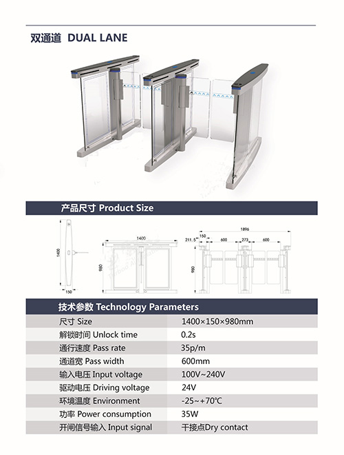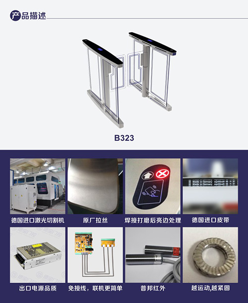 速通門系統紅外防夾功能,速通門B323A在擺臂復位的過程中紅外檢測到人在通道中,擺臂會自動回到打開狀態。